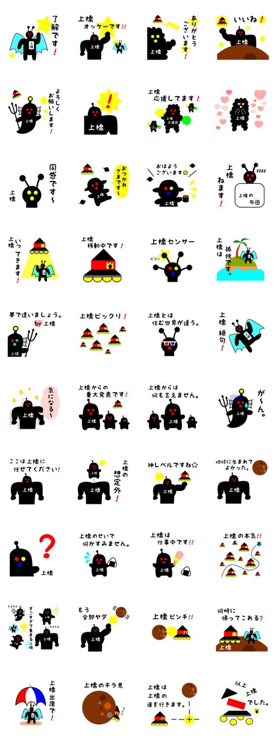 上橋さん専用の、ちょっぴりシュール&かわいい&おもしろい名前スタンプ。敬語がメインです。