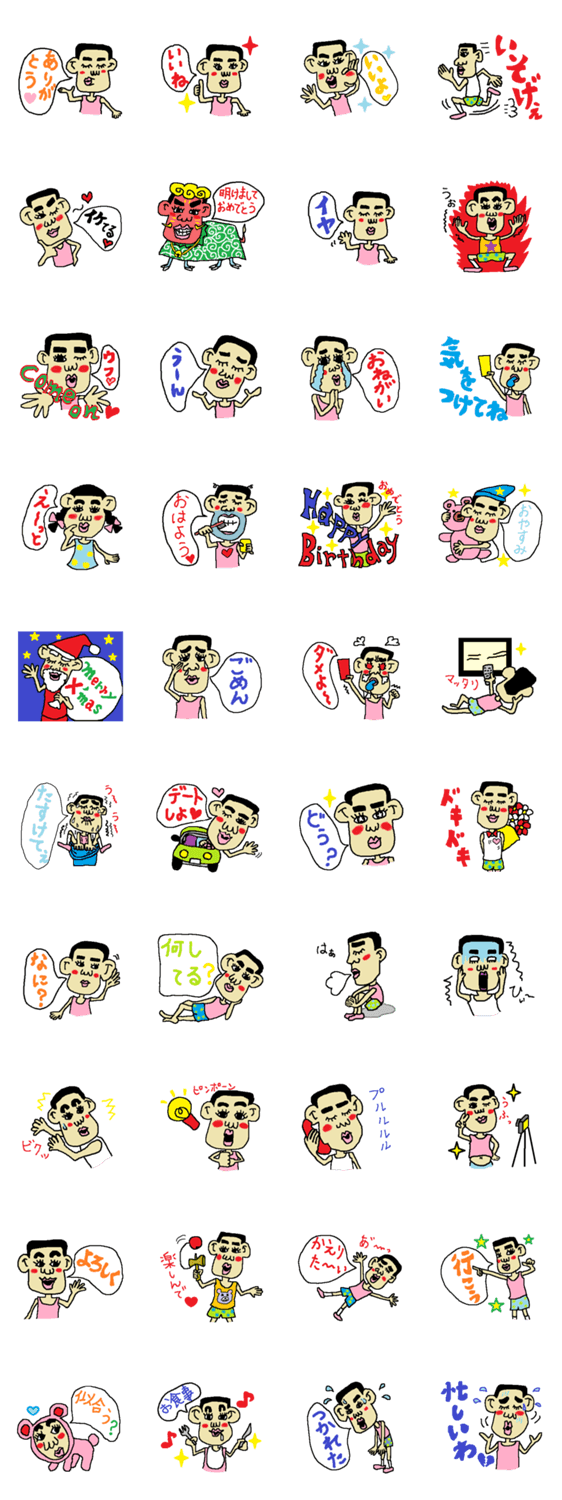 日本語版のオリジナルキャラクターのキモ可愛いキモ男くんの登場です。使いやすくユニークな表情がどれもとっても可愛いいですよ。