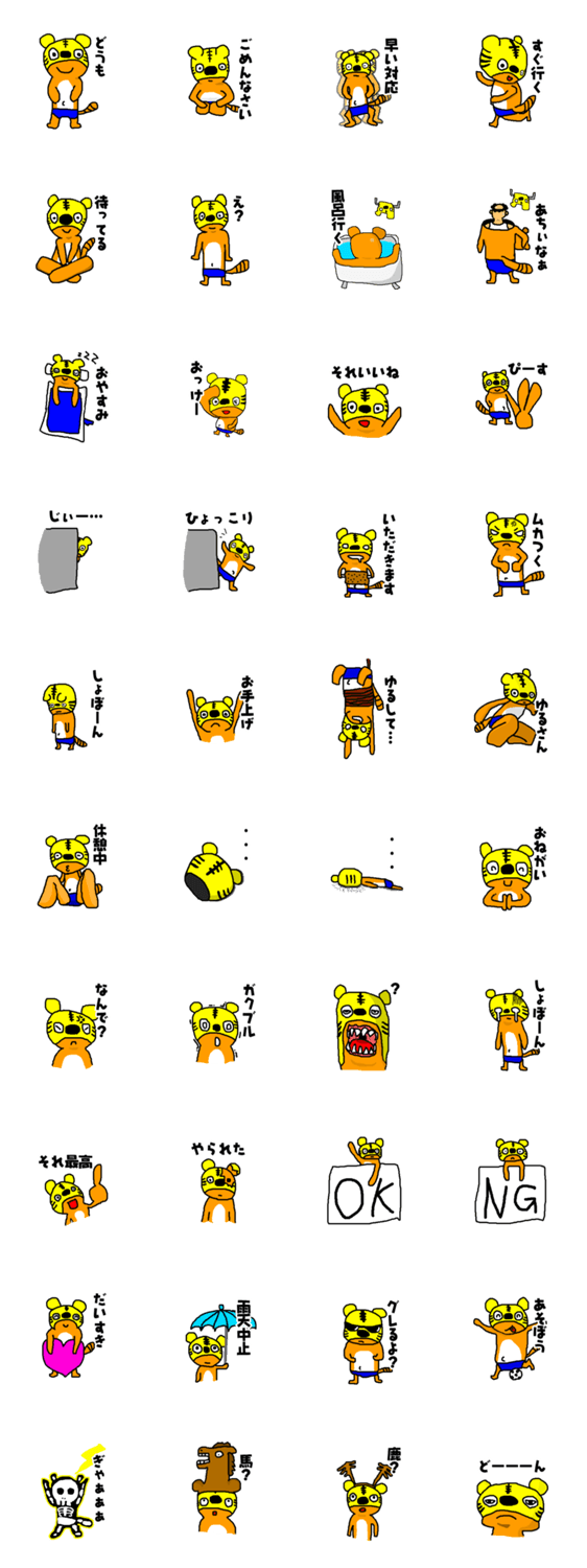 虎のハヤトラ♂ 本当に虎なのか?なんなのか?謎に包まれたハヤトラです。 どんな場面でも対応できるスタンプです。 どうぞよろしくおねがいします。