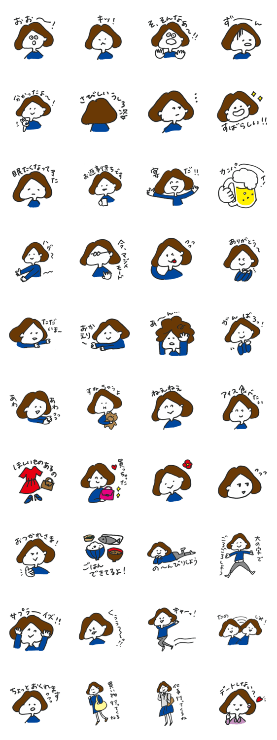 やんわり使いやすい、おんなのこのスタンプ。主婦やOLさんの毎日のやりとりに。旦那さんや彼氏をねぎらいつつ、日常のおしゃべりで使えます。アイスのおねだりもできます。
