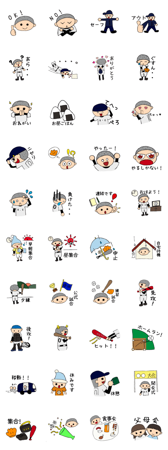 少年野球や草野球に携わっている人向けに作成したスタンプです。試合や練習準備などでバタバタしている時に、スタンプを使って連絡を取れればよいかなと思い作成しました。