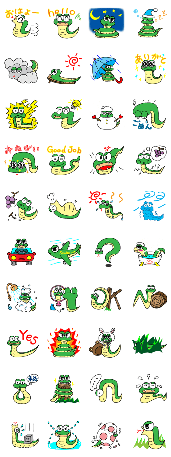 毎日楽しく過ごすヘビ「シー」の日常スタンプ