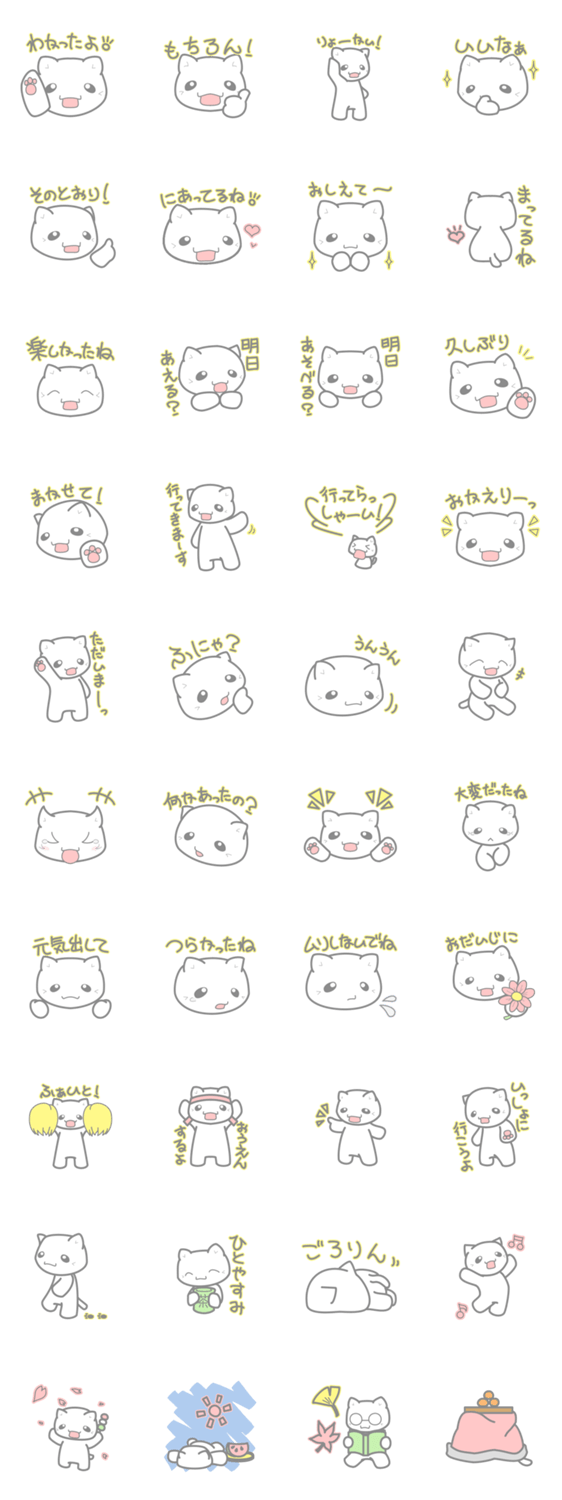 みんなと仲良くなりたい白猫のスタンプ第2弾です。伝えられることが増えた白猫と一緒に、みんなともっと仲良くなりましょう!