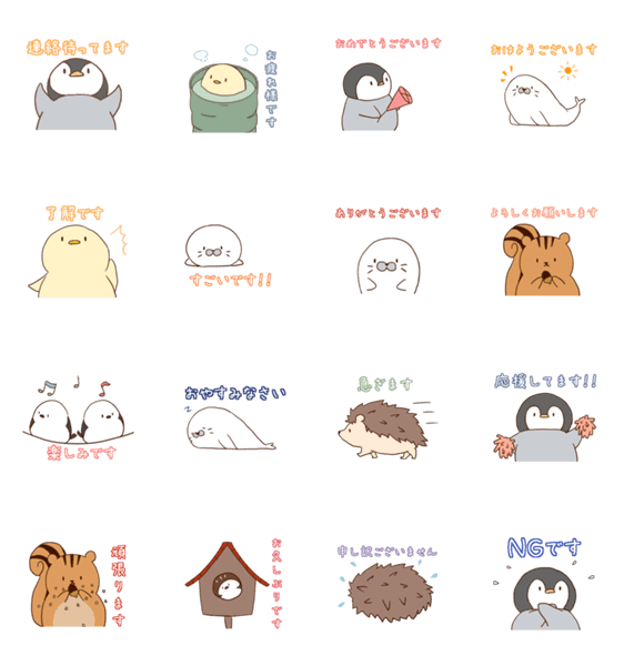 丁寧語のまるっとしたどうぶつたちのスタンプです。