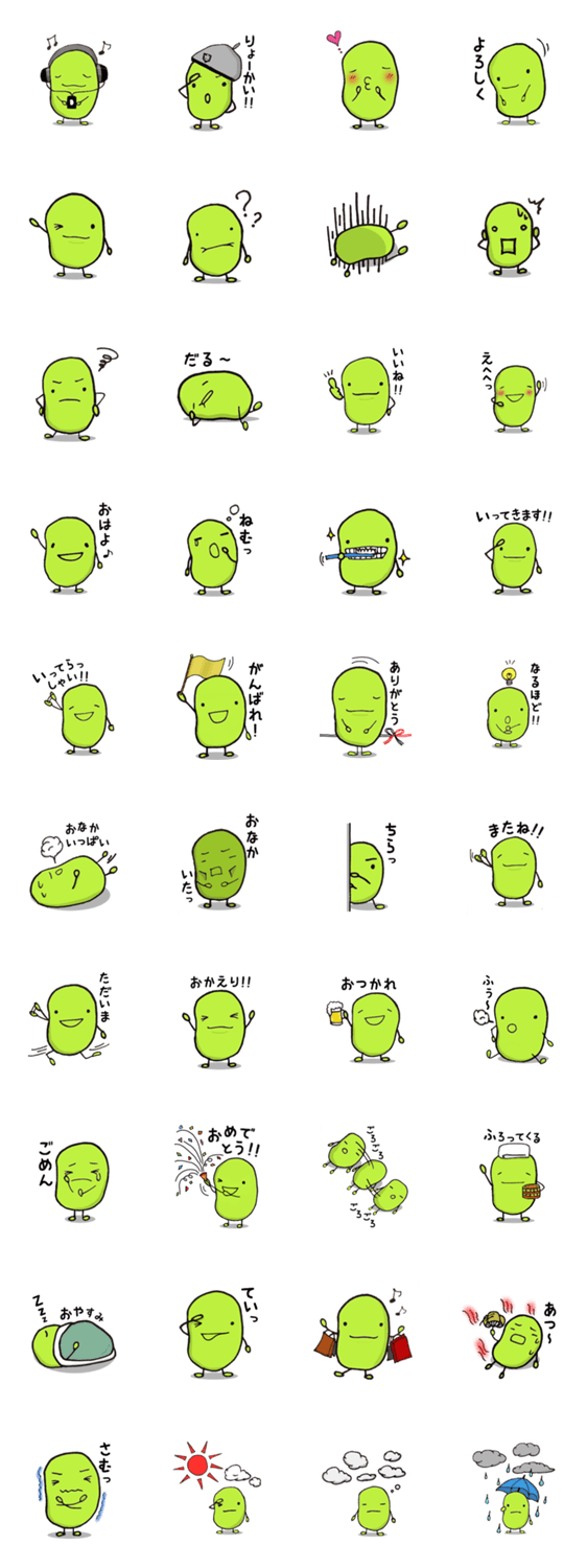 時に嬉しく 時にゆるく 時に癒して ー 自由気ままな、えだまめスタンプです。