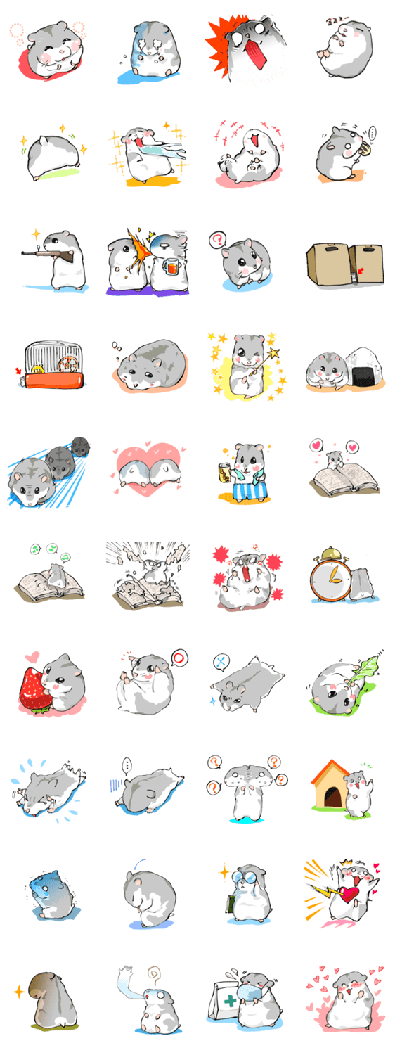 ハムスターのスタンプです。食事、喜怒哀楽、いろいろ詰めました。
