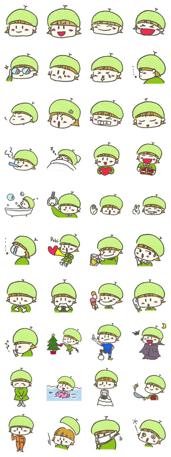 メロンの帽子をかぶった女の子。喜怒哀楽を簡単に感情表現したい時に使ってください。