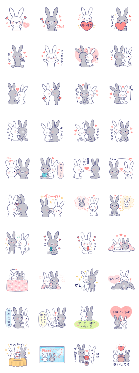 ラブラブなうさぎ達のスタンプです♪「寂しがりうさぎ」続編です。