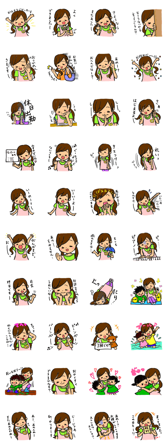 幼稚園先生、保育士さんのためのスタンプ!保育経験者の作者が色々思い出しながら作りました(笑)せんせいスタンプを楽しんでくださいね♪