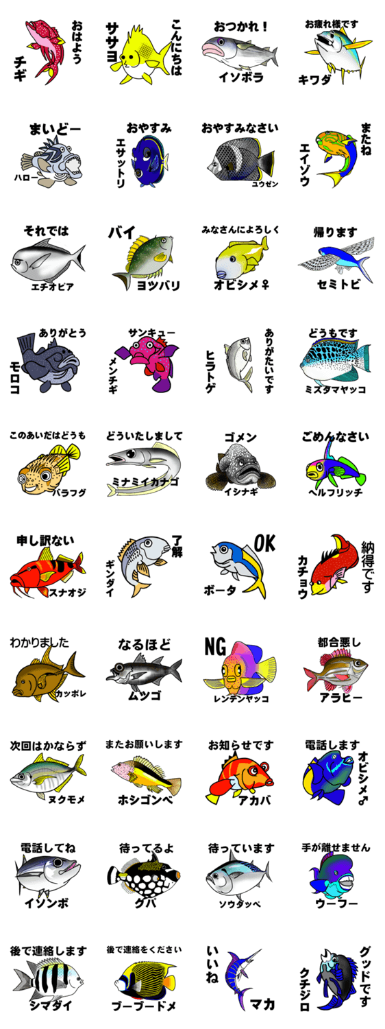 小笠原の海にはたくさんの魚がいます。 その中の一部ですが地方名とともに描いてみました。