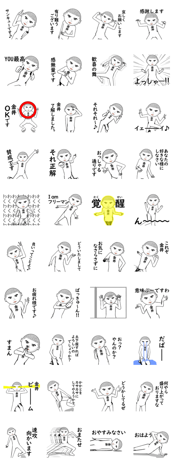 真顔の名前・名字スタンプです。♂♀verあり。名字は♂♀両パターンあり※かない,かねい