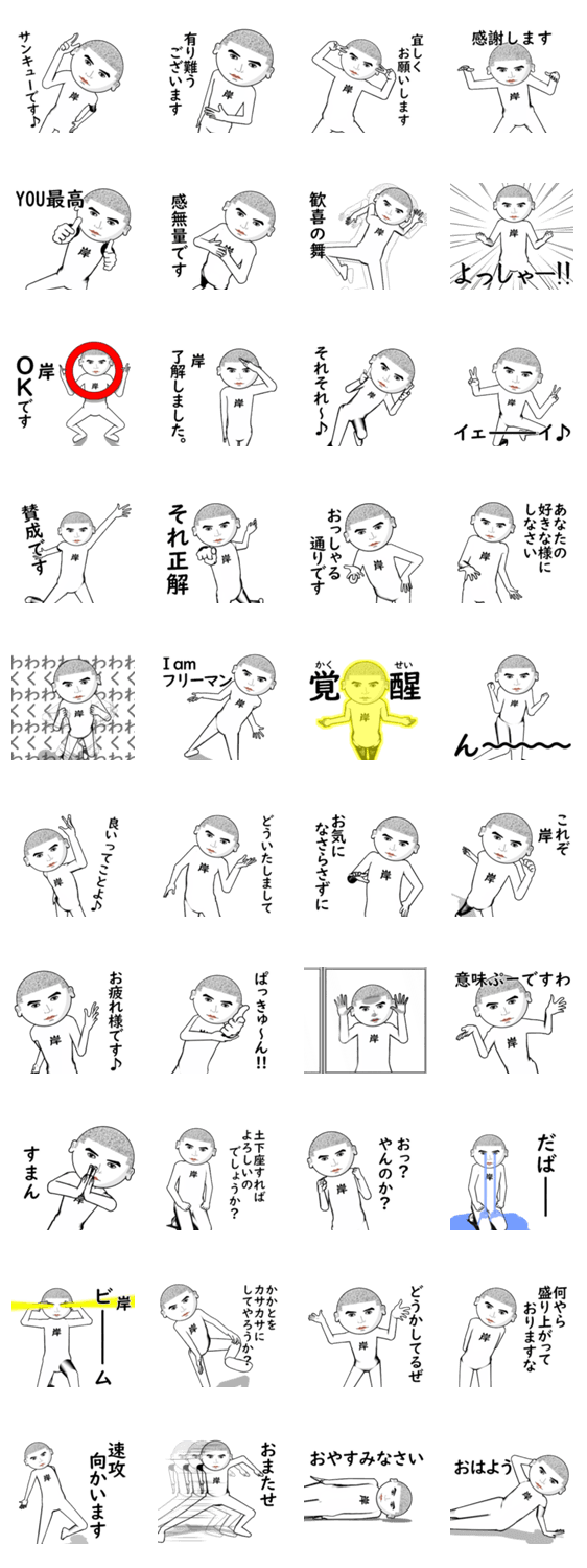 真顔の名前・名字スタンプです。♂♀verあり。名字は♂♀両パターンあり※きし,ぎし,みね