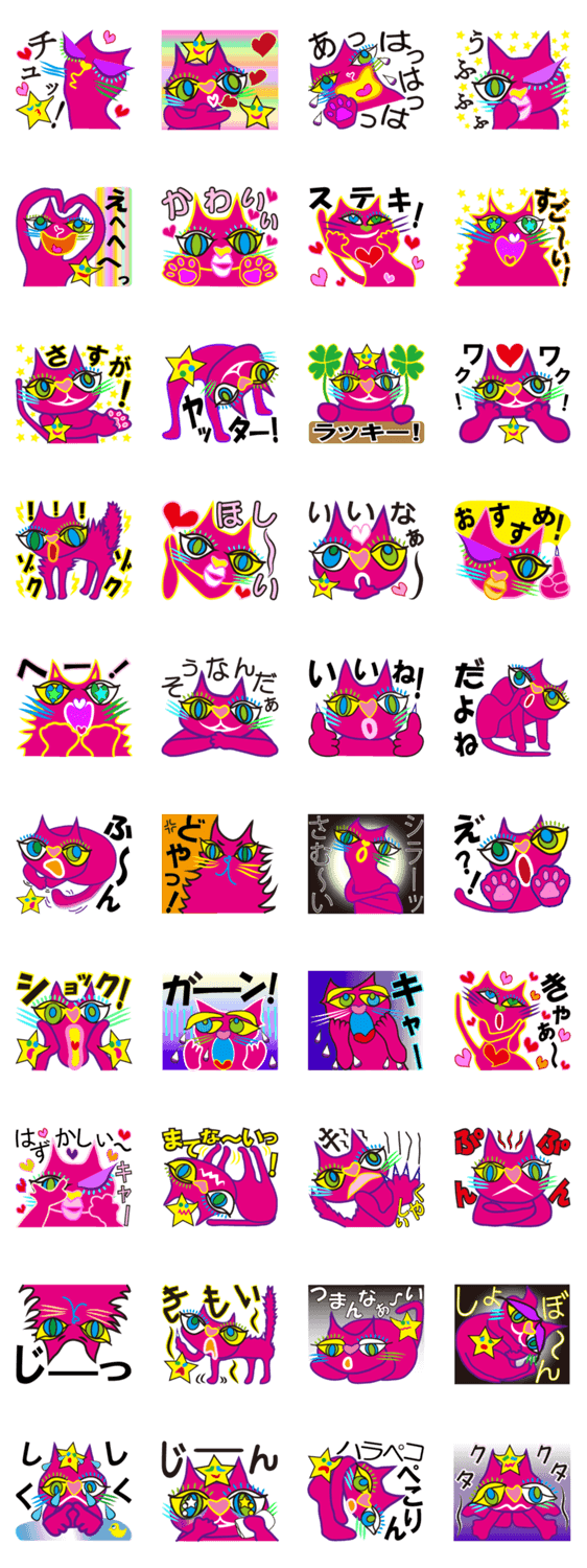 全身ショッキングピンクな猫☆ ネコ ♪ ねこ! 第5弾は、様々な感情を瞬時に伝えるのに重宝する幅広い感情表現が満載♪ これでチャンスを逃さずに感情を上手に伝えられるネ