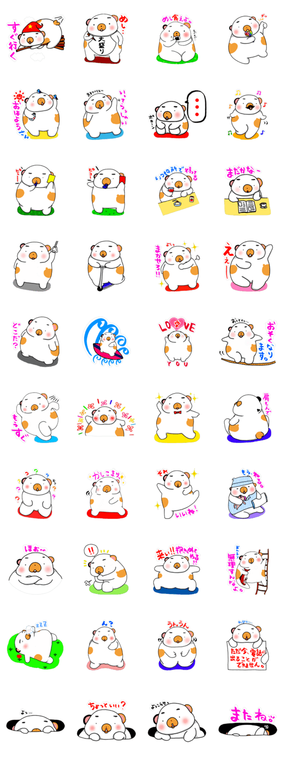 3色カラーのくまさんスタンプ☆“三毛(ミケ)くま” お茶目でマイペースの男前くまさんです♪ 待ち合わせに使えます。 ☆日本語版☆