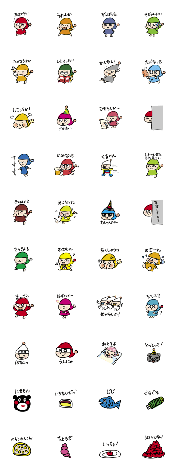 阿蘇山に住んでいる熊本弁まるだしのこびとさんがいたらなあスタンプです。