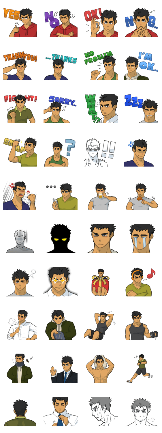 つり目でゴツいけどどこか可愛い、ハスキー犬のような男子の日常系スタンプです。