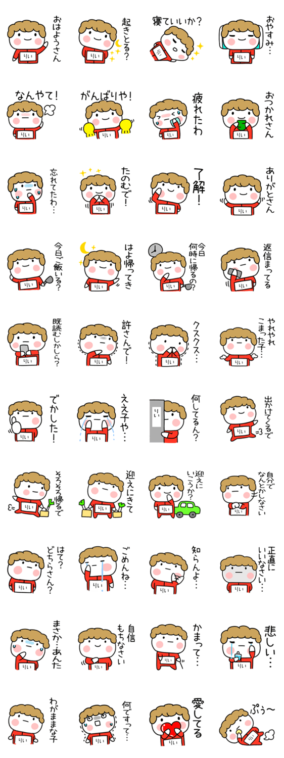 おかんが毎日使いそうな無難な言葉の「りい」名前スタンプです。かあちゃん=母になった気分で誰でも使えます。アフロ?パンチパーマのしろまるキャラです。もるきゅた作
