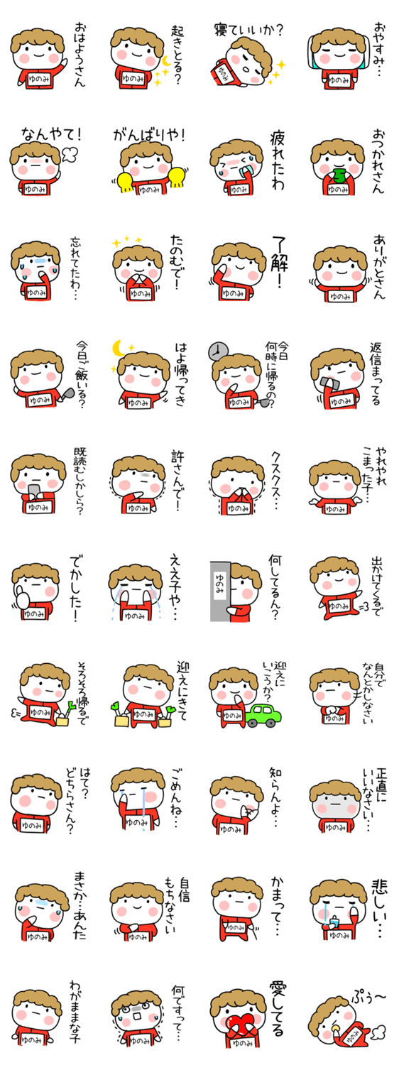 おかんが毎日使いそうな無難な言葉の「ゆのみ」名前スタンプです。かあちゃん=母になった気分で誰でも使えます。アフロ?パンチパーマのしろまるキャラです。もるきゅた作