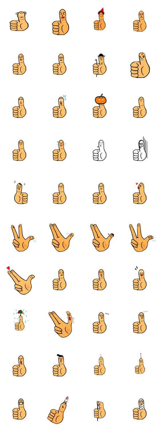 このスタンプは良いと言うジェスチャーを表す親指に表情をつけてかわいくアレンジしました