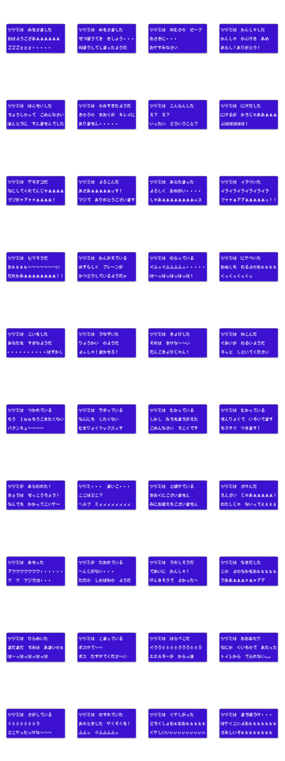 名前、表示名、あだ名が「ツヅミ」を使う方のための、専用ドット文字RPG風のスタンプFです。昭和の懐かしい8ビットRPGリスペクト。