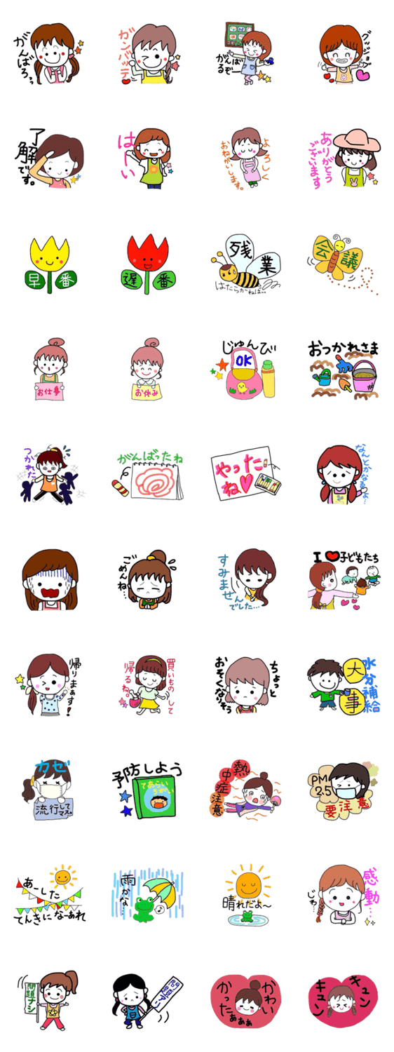 保育士さん、幼稚園教諭さん、日頃の勤務ご苦労様です。いつも子どもたちのためにありがとうございます。よかったらスタンプ使ってください。
