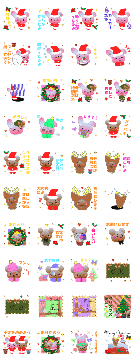 うさぎとくまのスタンプです。クリスマスバージョンです。