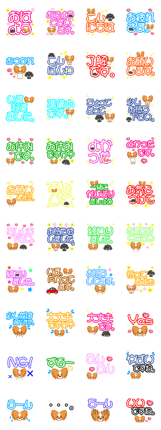 日常使える言葉をゆるい感じでデカ文字にしてみました。我が家のワンコもコッソリ登場しています。犬、パピオン好きな方も良いかと♪