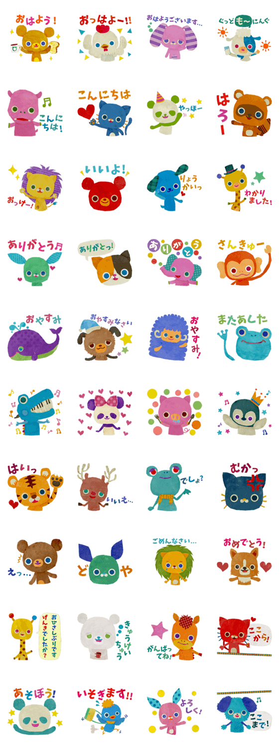 やさしくてシンプルな、だれにでもかんたんにつかえるスタンプです。よくつかうあいさつのスタンプは、4つずつはいっているのがうれしいですね!