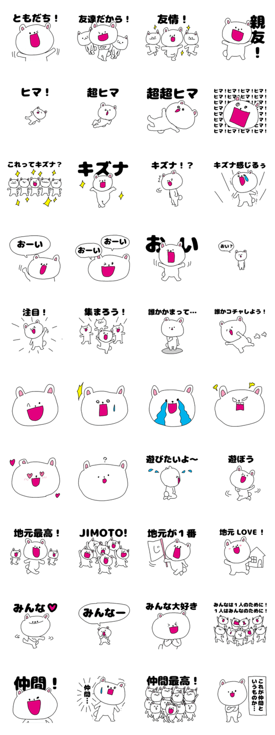友達、仲間、親友、地元、絆、友情!これらは最高の宝物!このスタンプで笑いながら、深いキズナをつくろう!