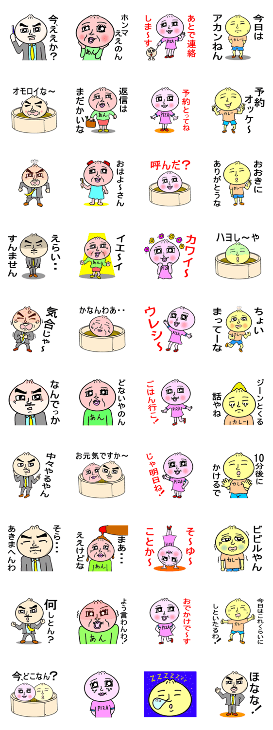 ぶたまんの父、あんまんの母を中心としたクールな家族、肉まん一族のスタンプです。お笑い系・シュール系・癒し系・関西弁が好きな方、会話の盛り上げに使ってくださいね!
