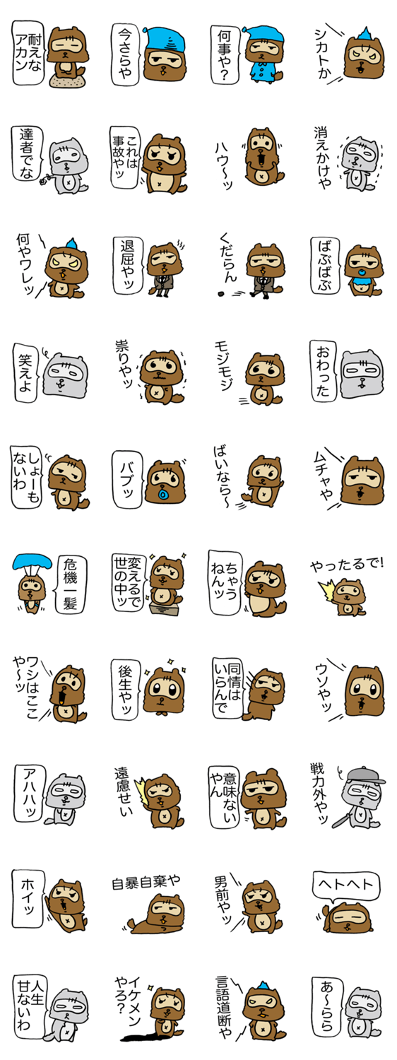 関西弁で話す情けなくも愛嬌のあるタヌキのスタンプ第4弾。