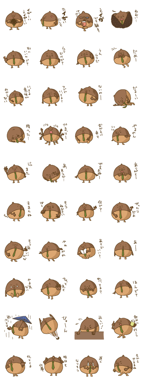 日常会話の中にさりげなく「くり」を入れてくるちょっとウザくも憎めない新米サラリーマン栗原さん。ver2は「イガ」まで入れてくるようになりました。