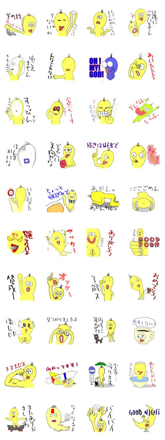 手書き感満載のキモくてゆるいシュールで少し関西弁なヤツ。日常会話にほりこんで使ってね