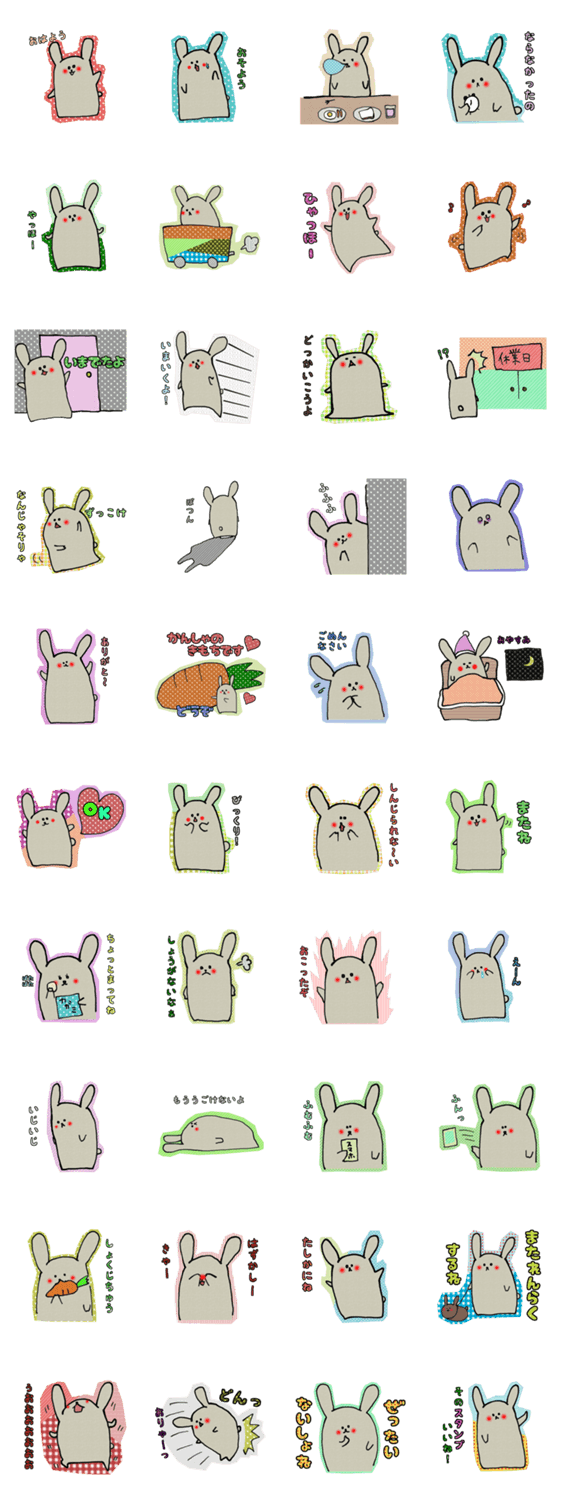 ねずみいろで地味なうさべぇのカラフルスタンプ。