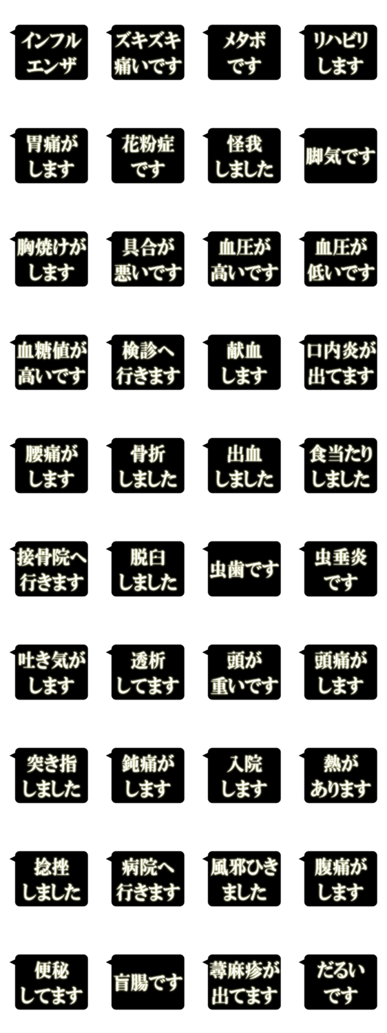 レントゲン風の文字です。よくある病気や怪我をデザインしました。病院、医者、医療系。