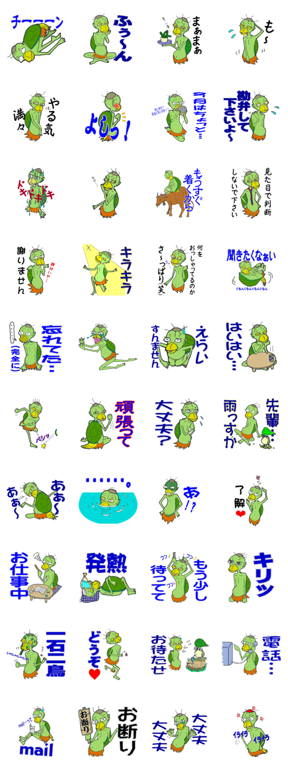 河童の田中くんは皿リーマン。なかなか人間世界が厳しいようです。そんな残念な田中くんが仕事や日常で使えるシュールなスタンプです