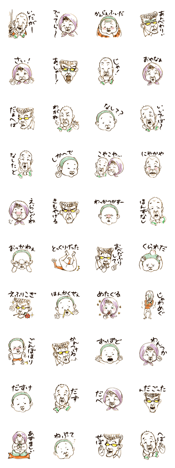 青森県野辺地町が津軽との境目とされ、三八上北や下北の一部、岩手県などで日常的に使用されている南部弁を、素朴なスタンプに仕上げました。みなして使ってけろ!