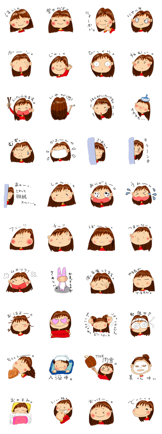 ふつ~の女の子の、ふつ~の日常をスタンプにしてみました、笑って怒って泣いて会話で使いやすものを作ってみました。