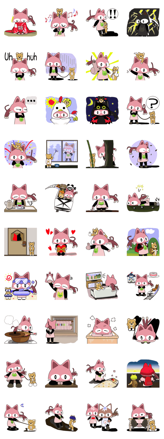 "ねここ"は帽子から生まれた女の子です。"ねここ"は、お散歩が大好き。今回はペットの"くまま"と一緒です。