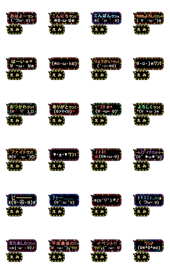 吹き出しの動く顔文字、名前スタンプ「えみ」様専用3☆第3弾は犬バージョン♪イルミネーションで楽しく♪アニメーション、日常、ネオン☆イルミ「○○」で検索してね