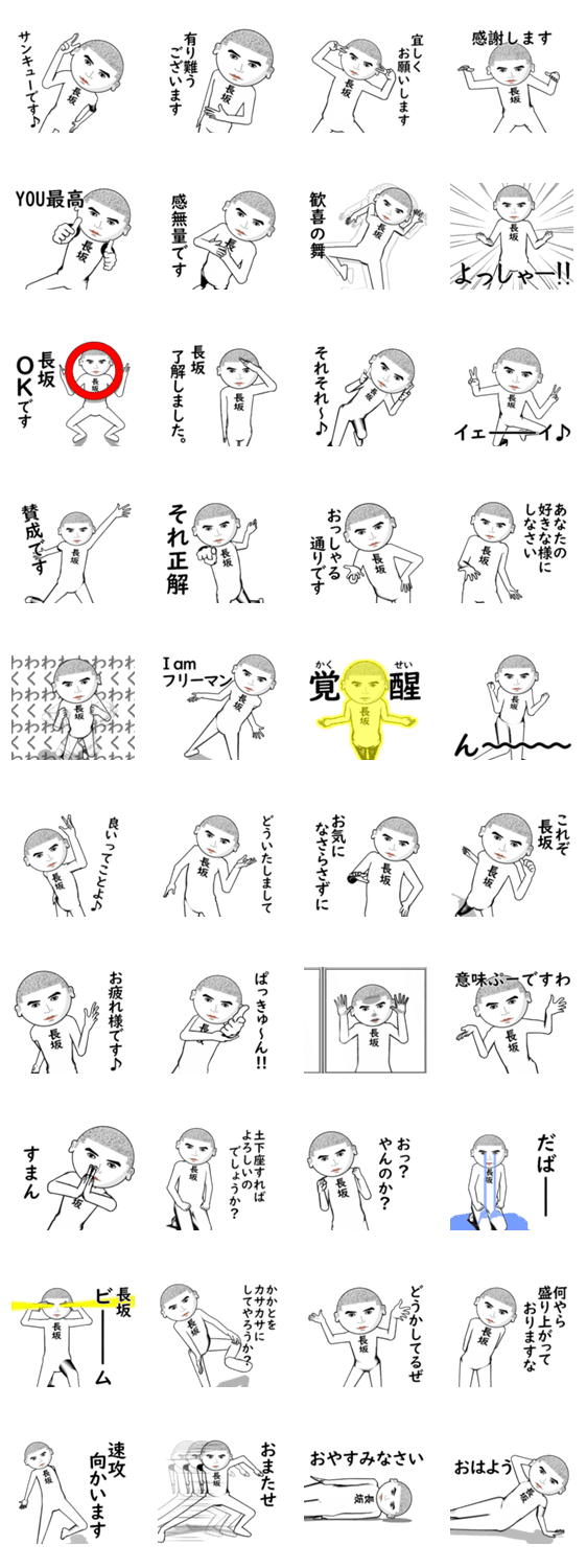 真顔の名前・名字スタンプです。♂♀verあり。名字は♂♀両パターンあり※ながさか,ながさわ,おさか