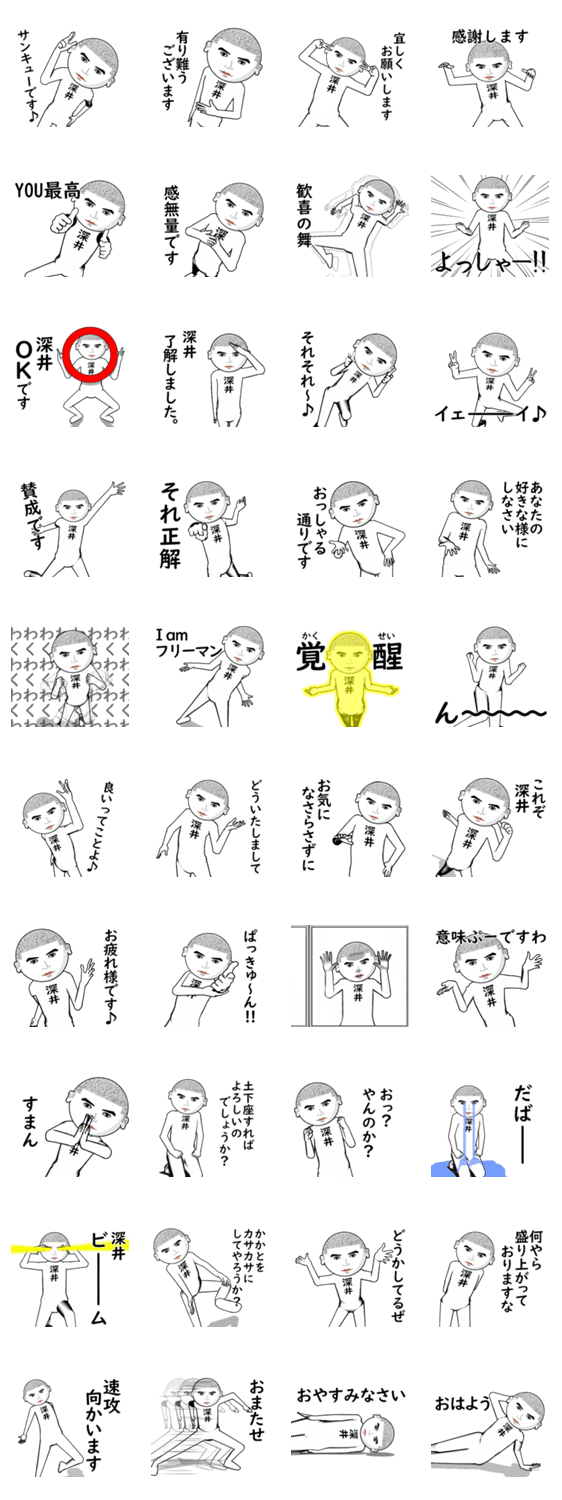 真顔の名前・名字スタンプです。♂♀verあり。名字は♂♀両パターンあり※ふかい,ふかざわ,ふきい