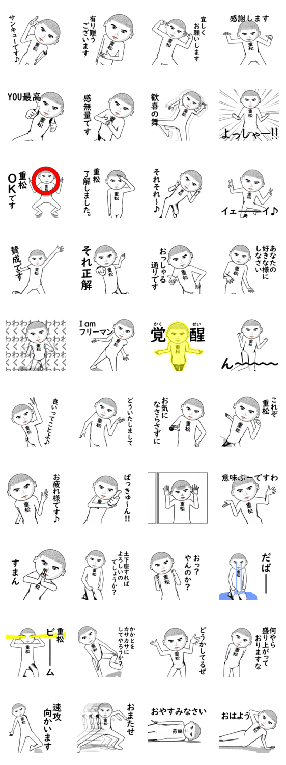 真顔の名前・名字スタンプです。♂♀verあり。名字は♂♀両パターンあり※しげまつ,かさまつ,えまつ
