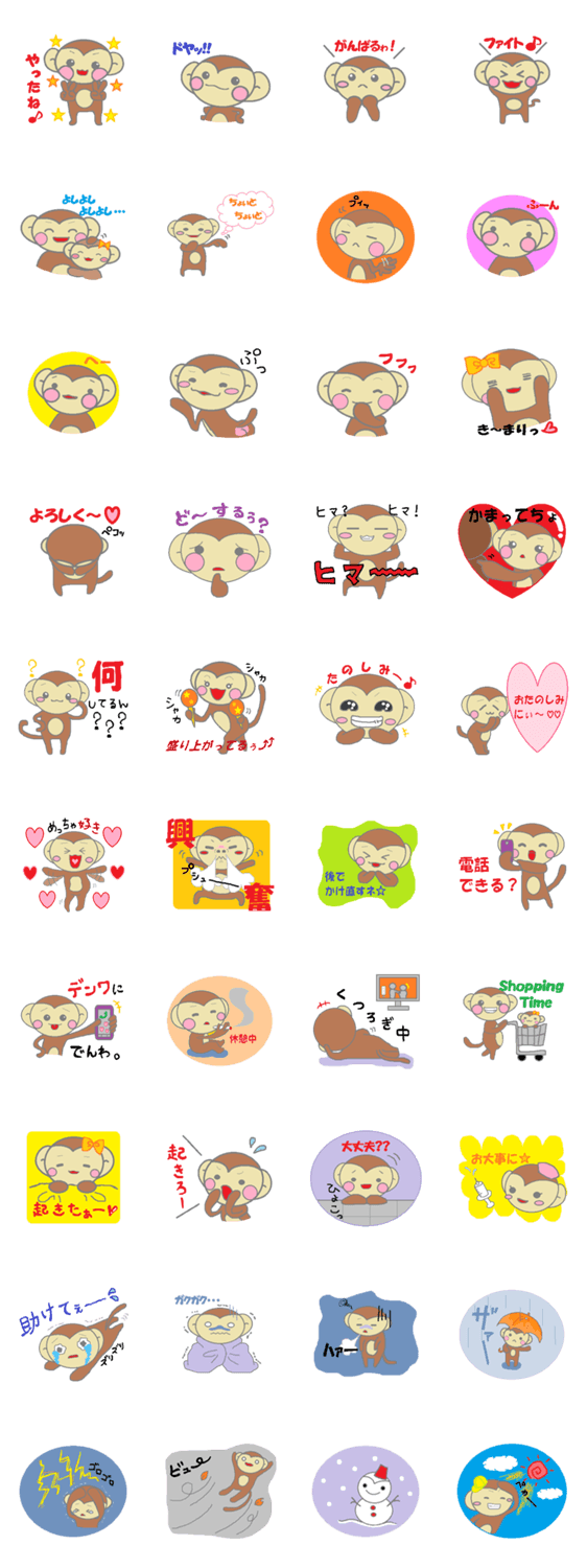 お猿のモンチーです。日常で使えそうなスタンプ第二弾を作りました。