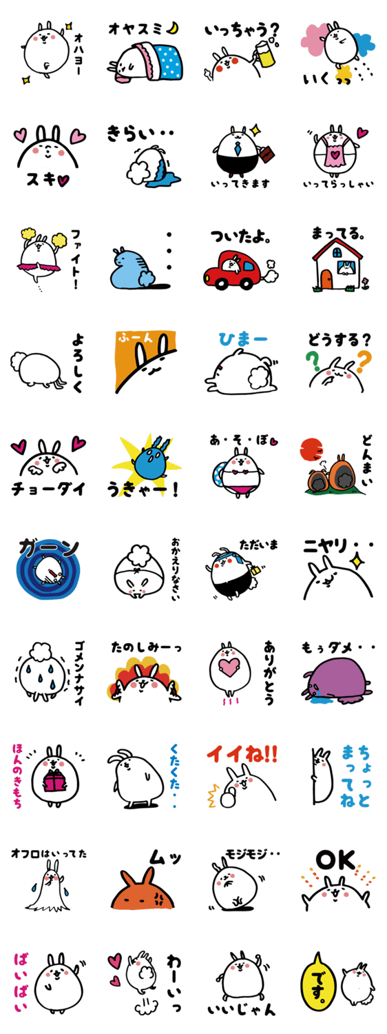 気の抜けた、ぬるいうさぎスタンプです。イラッとしたらポチっと押してね。イラストレーターtantanの第一弾!