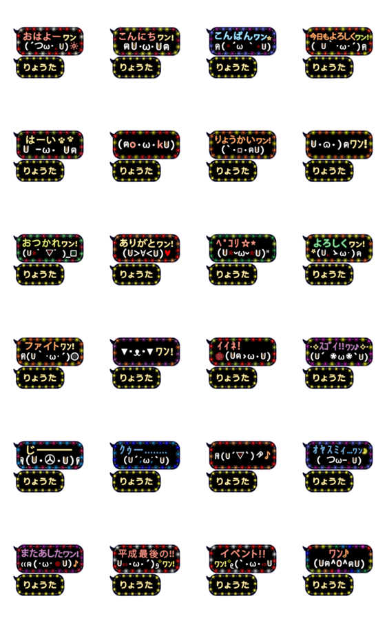 吹き出しの動く顔文字、名前スタンプ「りょうた」様専用3☆第3弾は犬バージョン♪イルミネーションで楽しく♪アニメーション、日常、ネオン☆イルミ「○○」で検索してね