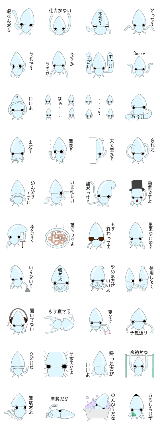 相手を小馬鹿にしている憎たらしいイカのスタンプです。
