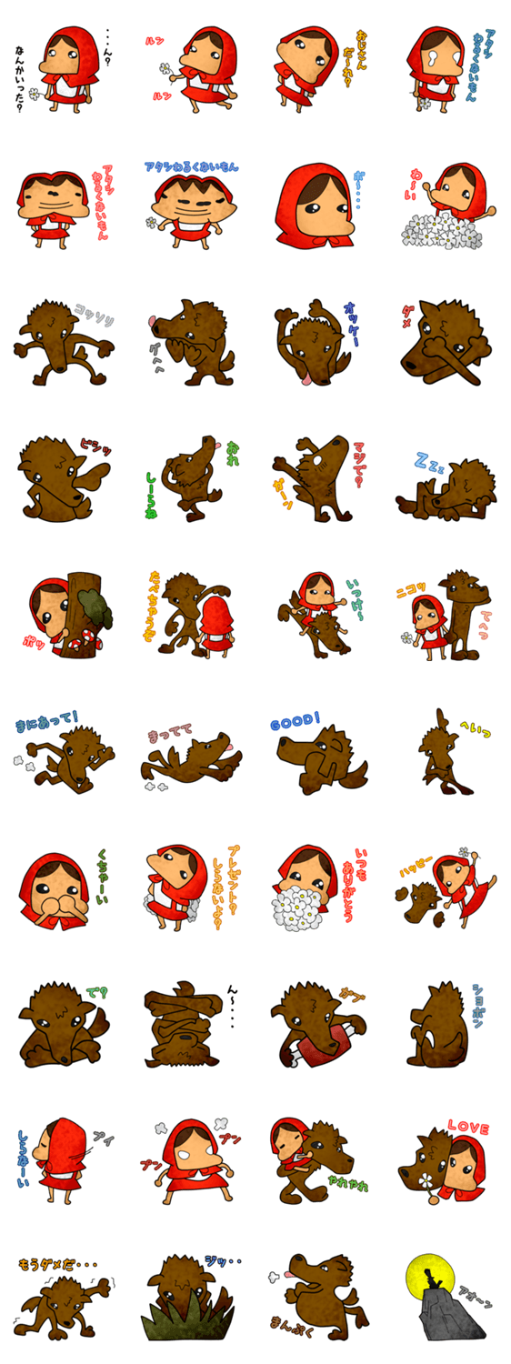 カゴと靴を忘れた赤ずきんちゃんとオオカミ -LINEスタンプマニア