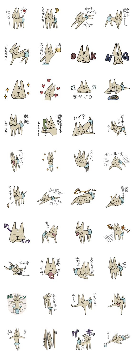 ぷっくりして可愛いフレンチブルドッグがガリガリとしているLINEスタンプ。 病的だけれど、足が長く見えて気に入っています。