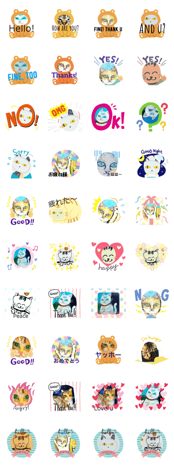 LINE Creators Studioでつくったスタンプです。オリジナルのキャラクターと我が家の猫ちゃんの写真でコラボしました。楽しんでいただけたら嬉しいです!